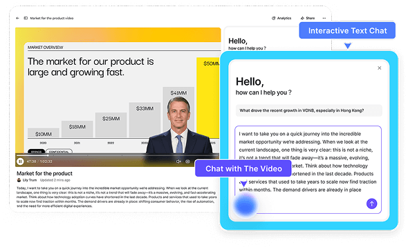 transforms your content into professional, multilingual and interactive videos in minutes.