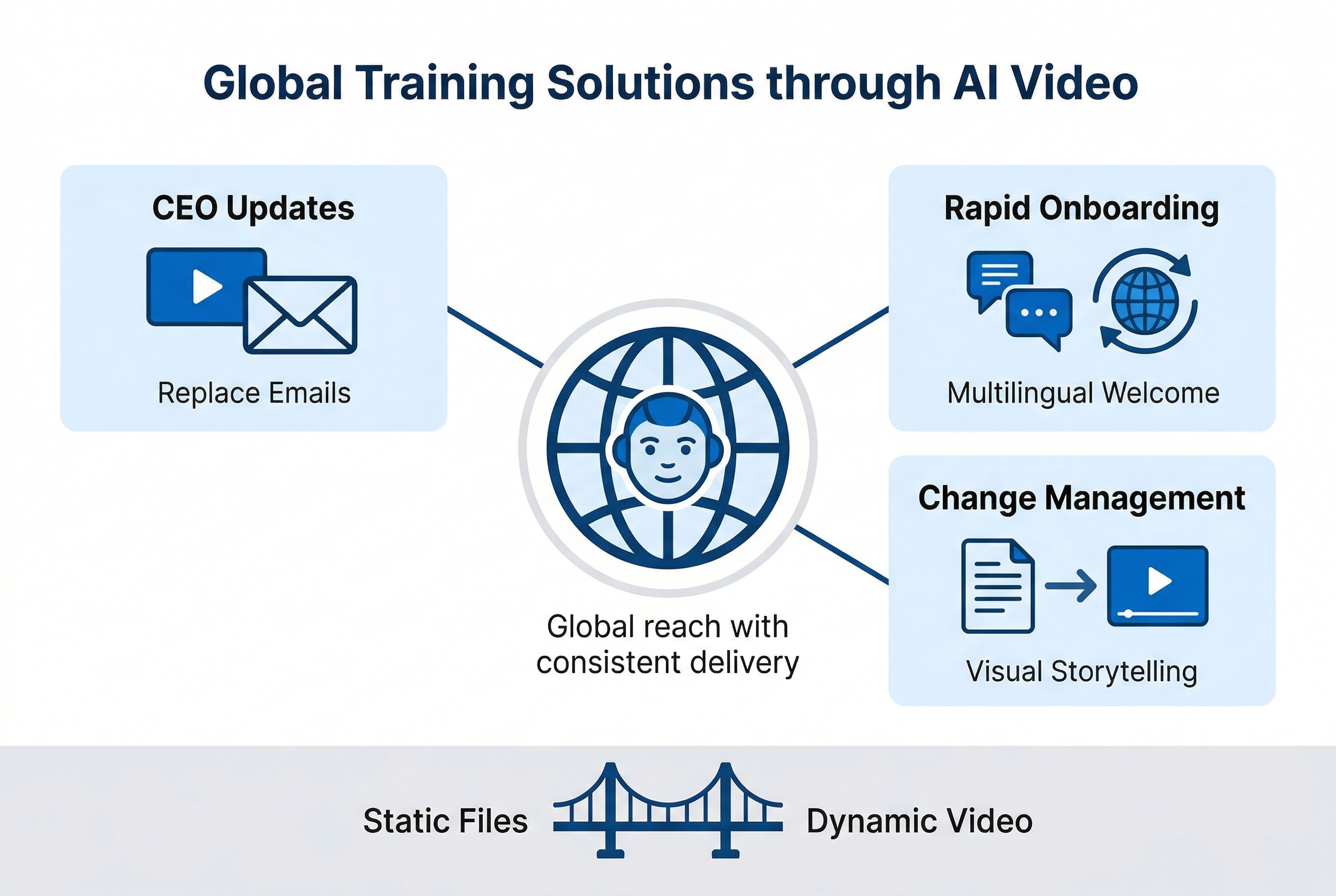 Traditional video production involves massive budgets for cameras, actors, and studios. These physical constraints often delay critical internal updates for weeks.