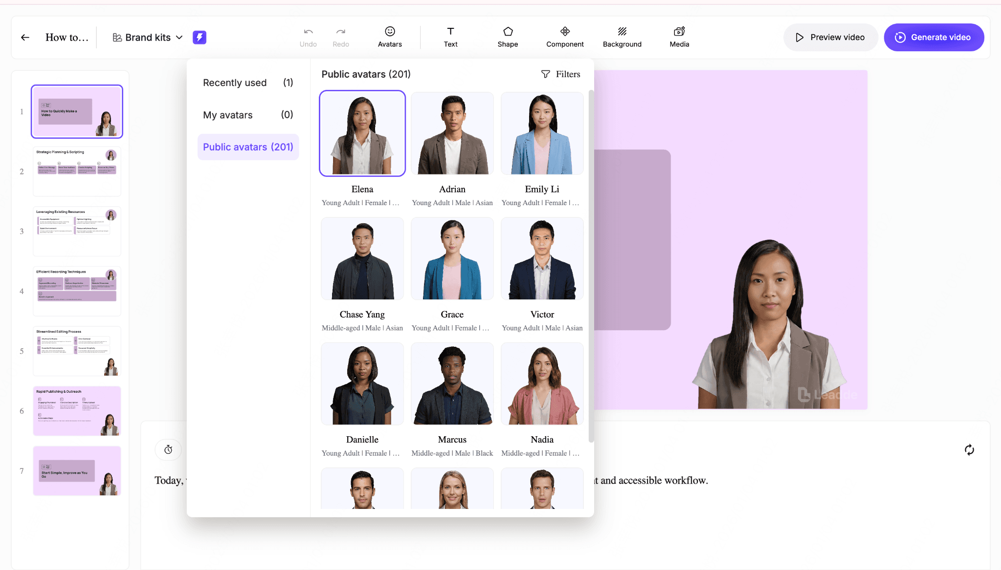 Customize the template by updating text, visuals, and brand elements such as colors, fonts, and logos. Many modern tools allow teams to start from scripts, documents, or outlines, then automatically map content into scenes—reducing manual layout work while keeping messaging consistent.