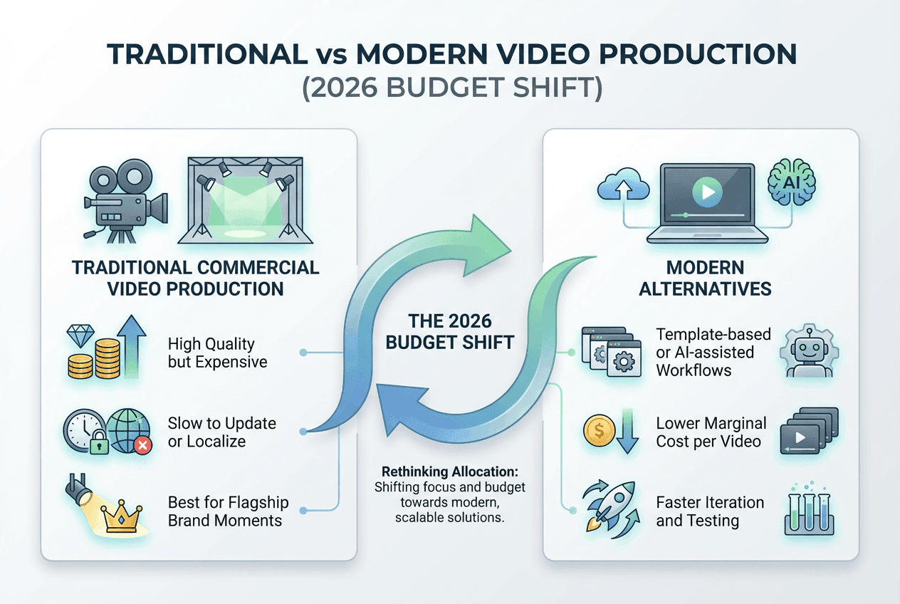 Commercial video pricing has widened in 2026 due to rising labor costs and the growing gap between lean digital content and premium brand production.