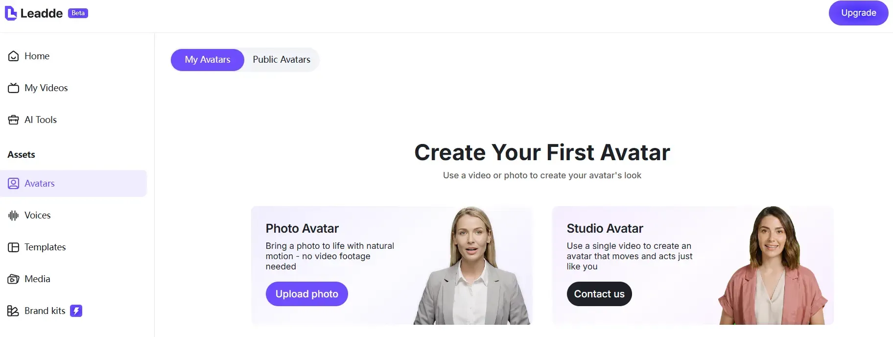 You can upload a photo to create a personalized digital avatar or record a short video clip to build a digital twin with voice and appearance cloning. For enterprise use, custom avatars help maintain brand consistency and trust.