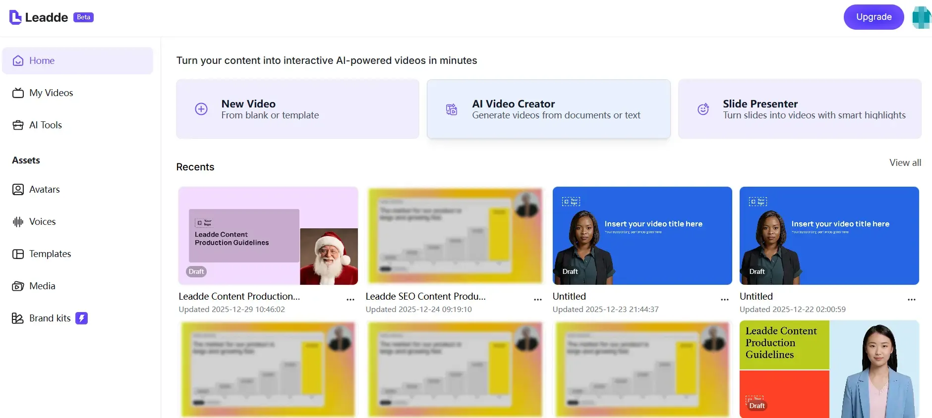 - Leadde.ai Best for enterprises that need multilingual avatars combined with document-to-video automation, interactive video chat, analytics, and compliance-ready workflows.