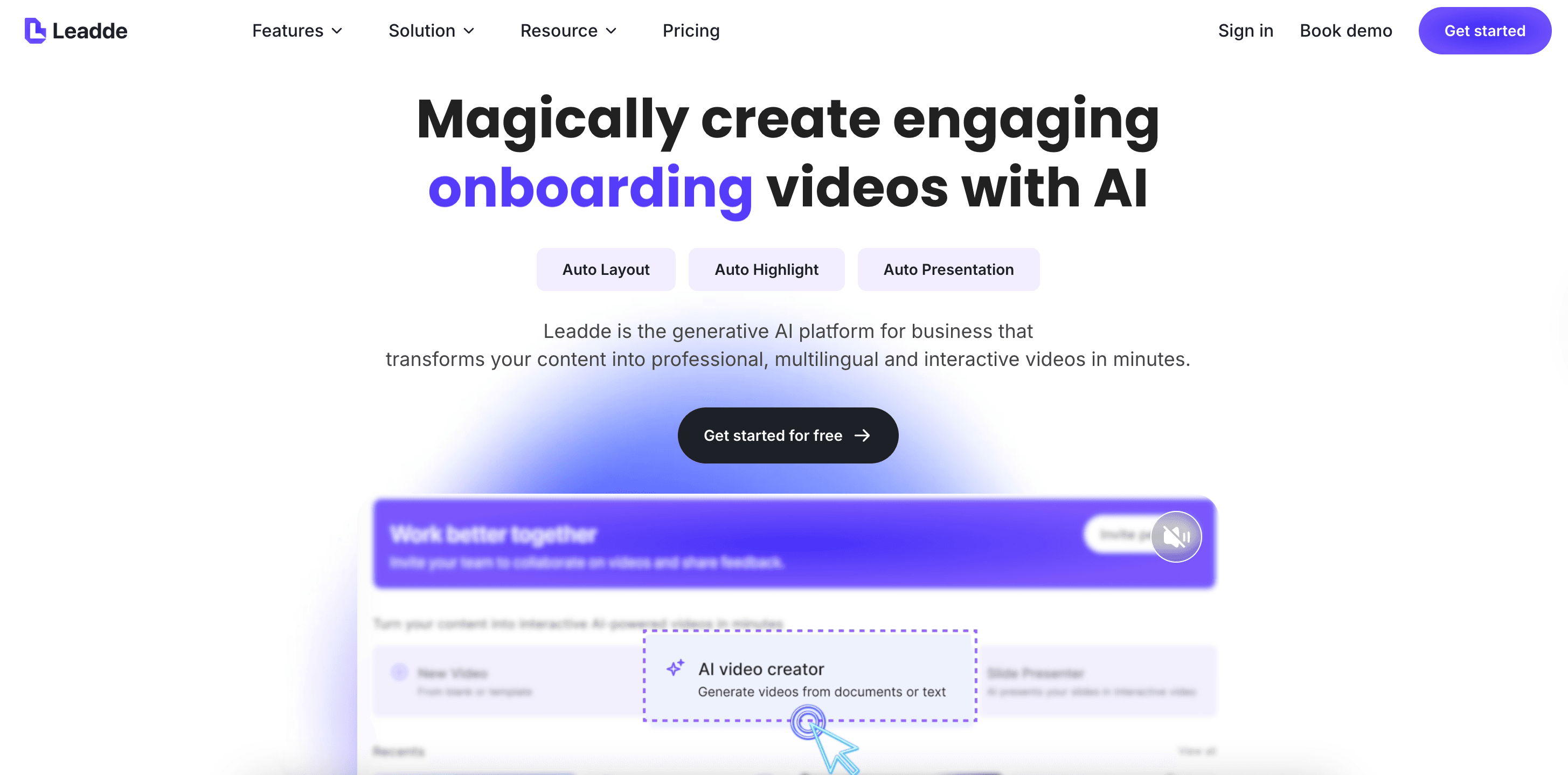 Manual editing often leads to boring visuals that fail to hold employee attention. Leadde solves this by using AI video generator for onboarding features like smart layouts. Every key message is automatically animated to emphasize the most important details.