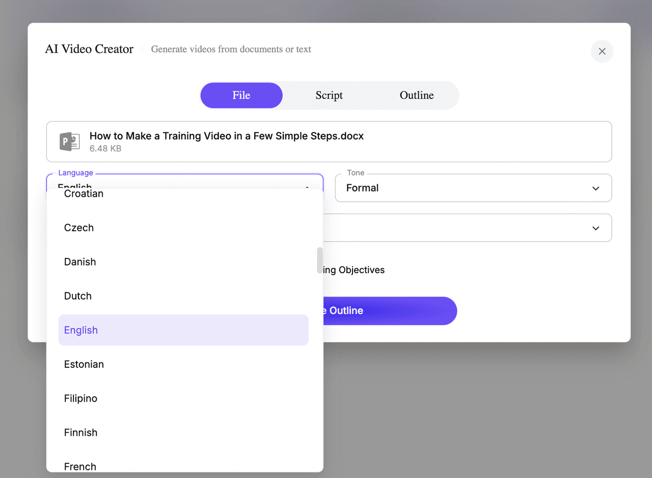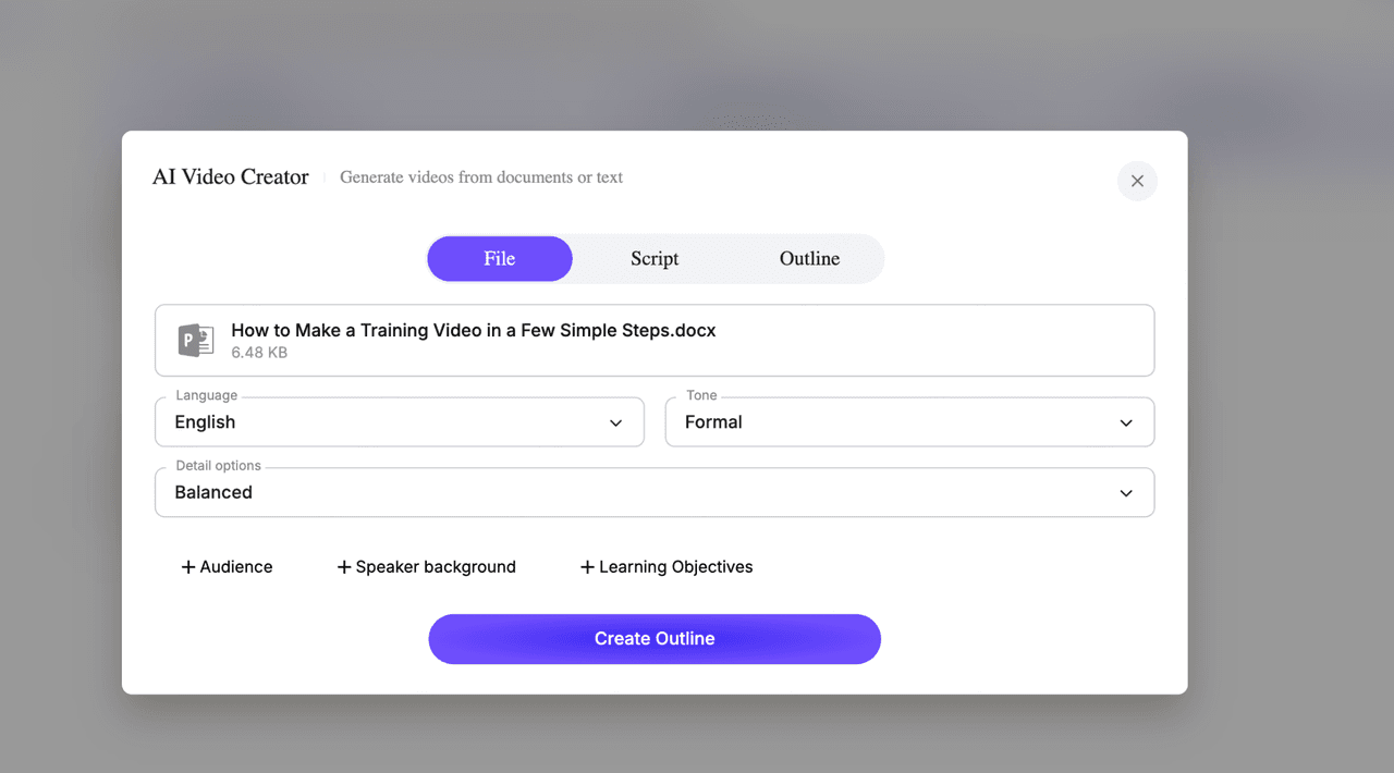This helps the AI understand your content and auto-generate a structured training video.