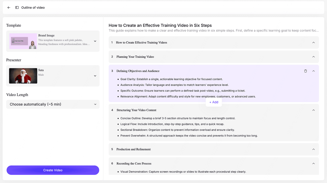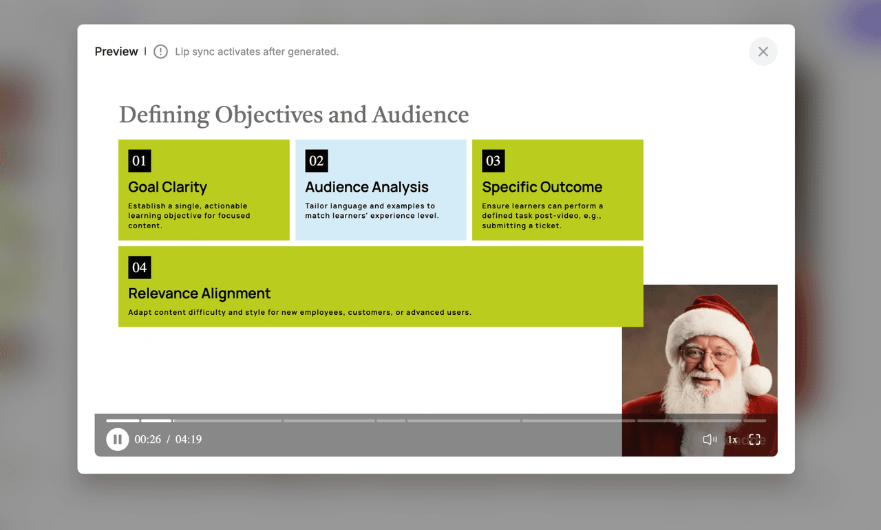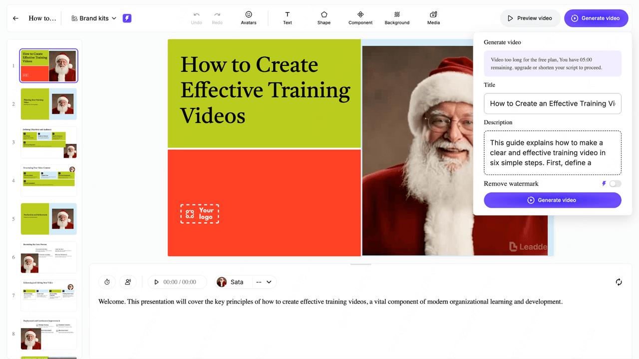 After Click “Create Video”, the AI generates your full training video: