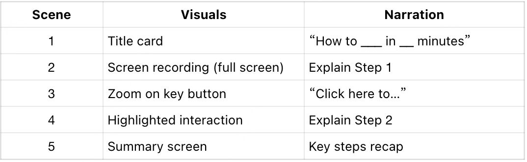 Here are some ready-made templates to structure your training videos quickly. Each template includes a sample script and a basic storyboard so you can begin recording right away.