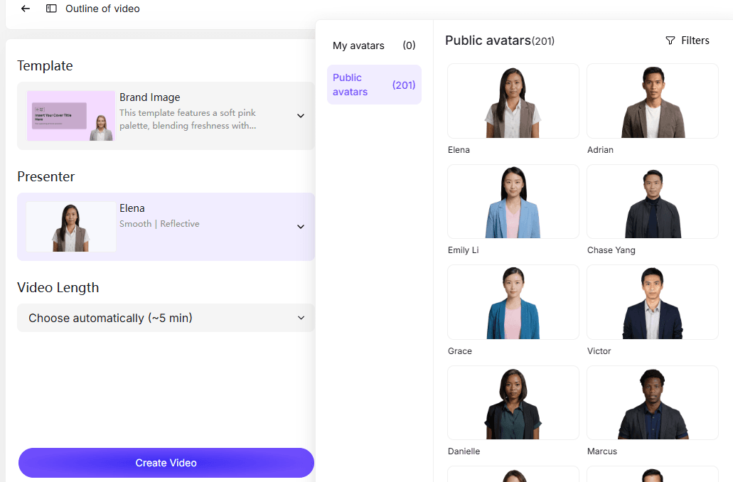Step 3: Choose Presenter, and Voice