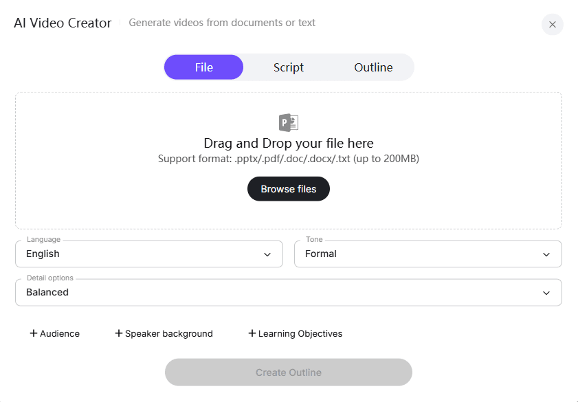This process works especially well for teams that already rely on documentation, making it unnecessary to manually convert audio to text before creating video content—everything starts directly from your written materials.