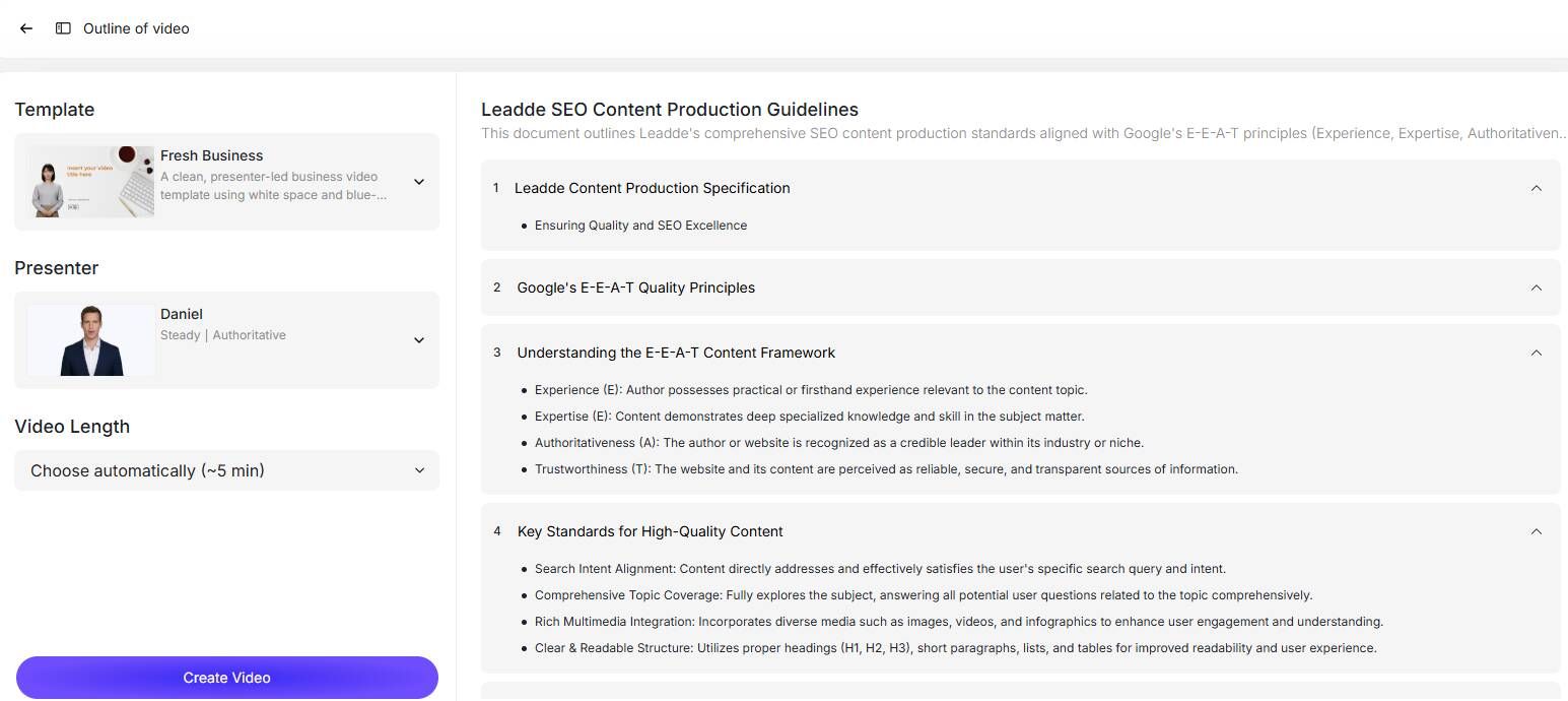 Platforms like Leadde convert PowerPoint files, PDFs, Word documents, and text scripts into structured video presentations automatically. This allows marketing teams to reuse existing pitch decks or commercial video templates for training and onboarding rather than starting from scratch.
