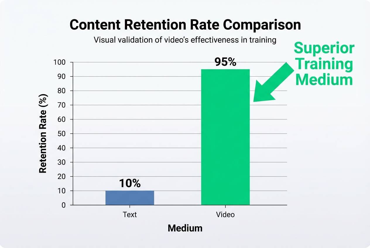 Data consistently shows that employees retain significantly more information from video than from text. Knowing how to make engaging corporate training videos is crucial, as video retention rates often exceed 95%. Visual storytelling anchors complex concepts, making them easier to recall during high-pressure sales calls.