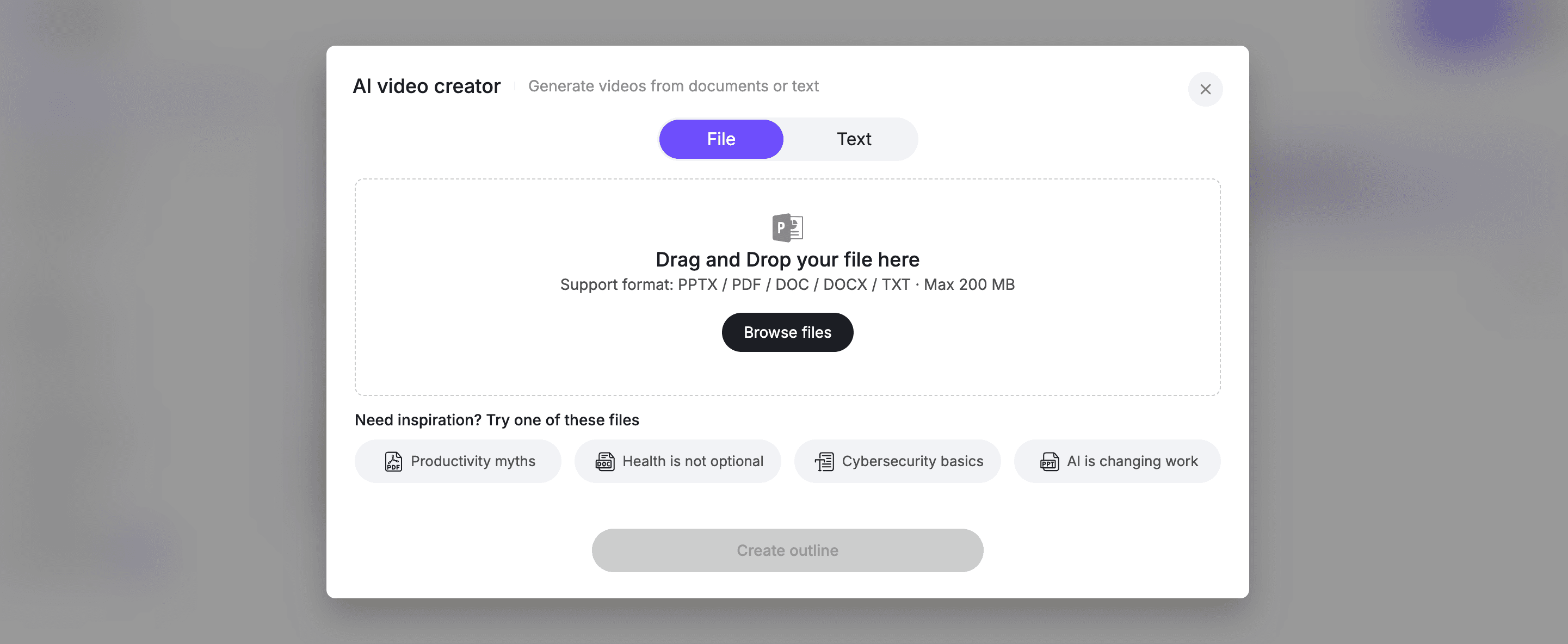 - Upload Large Files: Use the AI Video Creator to upload documents up to 200MB.