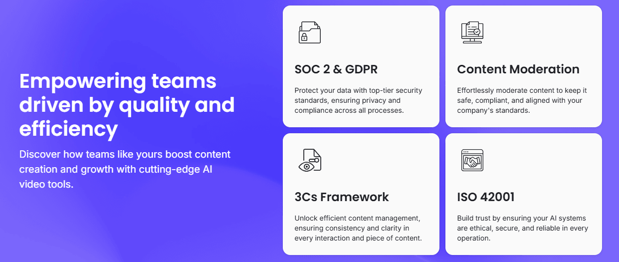 Always verify compliance certifications before purchase. Leadde supports SOC 2 and GDPR standards and strictly follows ISO 42001 guidelines for secure AI systems.